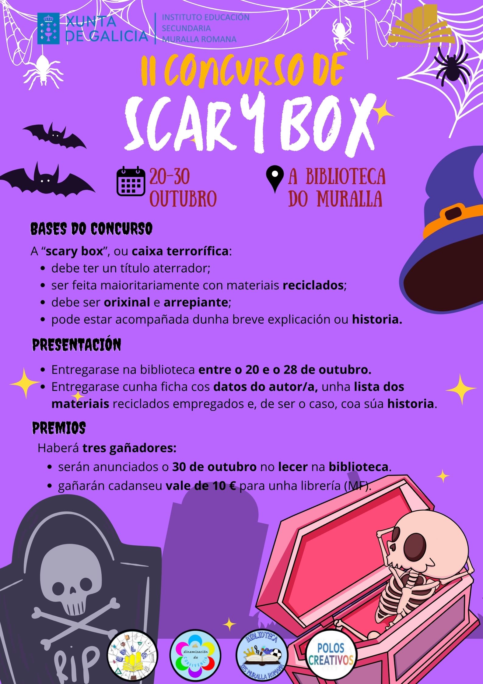 - Un concurso de caixas terroríficas, para o que podedes crear unha “scary box” e unha historia de terror; as cales sería preciso entregar entre o 20 e o 28 de outubro.