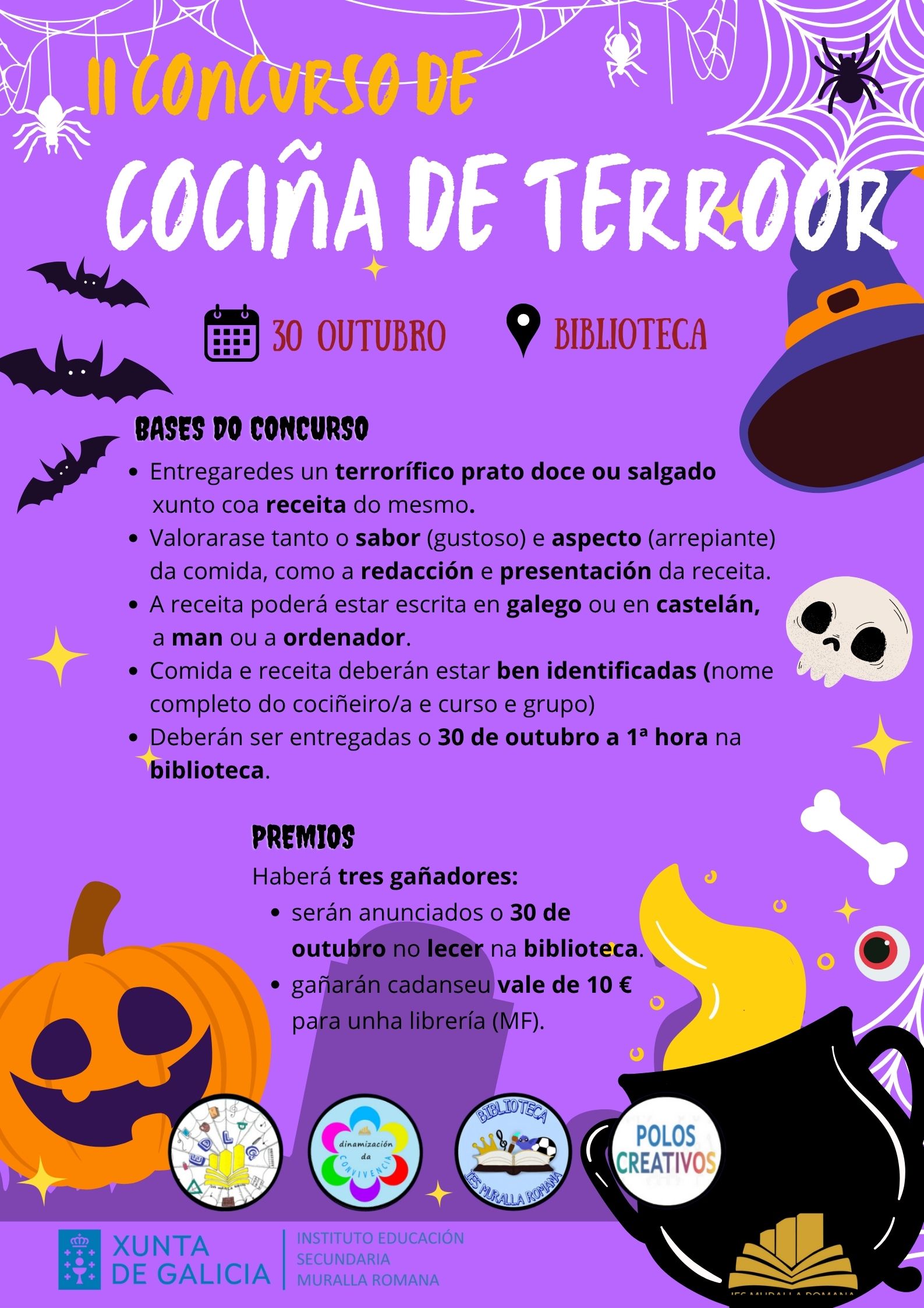 - Un concurso de cociña, para o que podedes escribir e elaborar unha receita terrorífica; as cales teríades que entregar o día 30 de outubro á primeira hora da mañá.