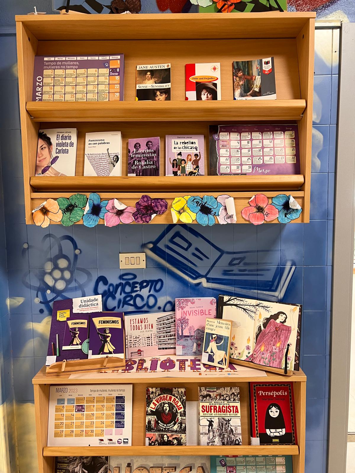 Este mes de marzo ofrecémosvos esta selección de lecturas para conmemorar o día da muller: algunhas novelas de Jane Austen en inglés, Invisible en francés, poesía de Rosalía de Castro, La rebelión de las chicas