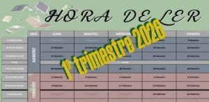 hora de ler Hora de ler. 1º trimestre 2026 Horario de "Hora de Ler" do 1º trimestre...Ler máis Hora de ler. 1ªav 2025/26 Horario de "Hora de Ler" da primeira avaliación...Ler máis Hora de ler. 3ªav. Horario de "Hora de Ler" da terceira avaliación...Ler máis Hora de ler. 2ªav. Horario de "Hora de Ler" da segunda avaliación...Ler máis Hora de ler. 1ªav. Horario de "Hora de Ler" da primeira avaliación e recomendacións ...Ler máis Hora de ler. Despexando dúbidas Explicada polos biblioaxudantes...Ler máis